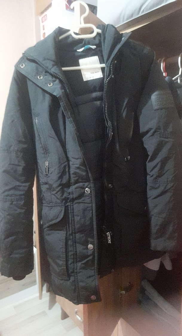 Tokalı ve uzun kollu, siyah renkli, yumuşak ve sıcak tutan fleece kumaştan yapılmış dar kesim kadın kışlık mont. Sokak modasına uygun.