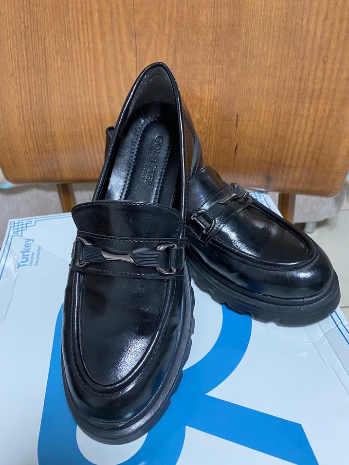 Siyah renk, tokalı ve blok topuklu kauçuk malzemeden yapılmış kadın loafer. Ofis ve günlük iş tarzına uygundur. Ayakkabı kutusu ile gönderim sağlayacağım.