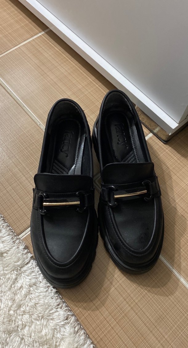 Siyah tokalı kadın loafer, blok topuklu ve kauçuk tabanlı. Minimalist tasarımıyla günlük sokak stiline uygun, trend casual görünüme sahiptir.