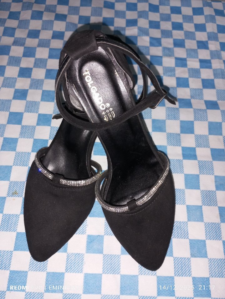 Siyah Tokalı Kadın Topuklu Abiye Ayakkabı