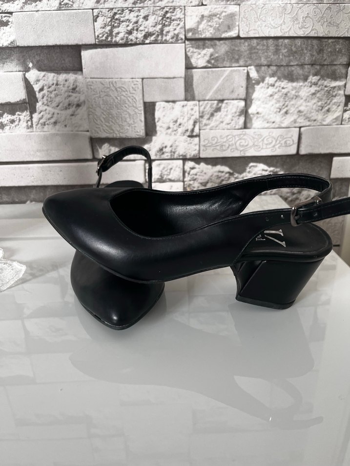 Siyah, tokalı kayışlı kadın topuklu ayakkabı sıfır ürün hiç kullanılmadı