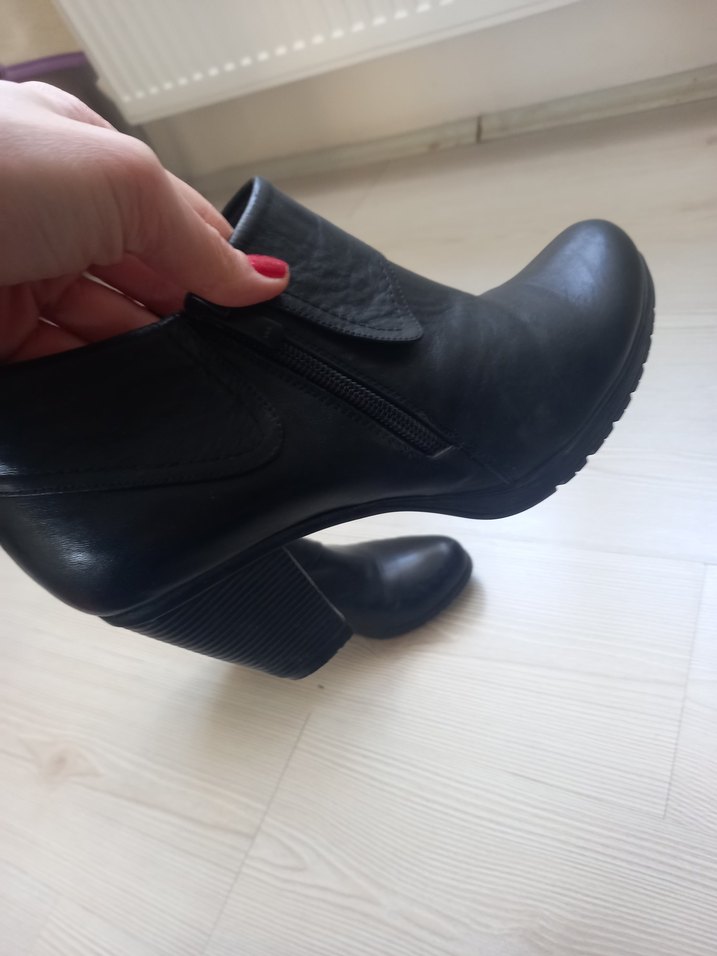 Siyah kauçuk kadın botlar, blok topuklu detaylıdır. Kolay giyim için yan fermuar bulunur. 40 numaradır. topuk 7 cm dir.cok iyi durumdadır sadece 2 kere giyildi.