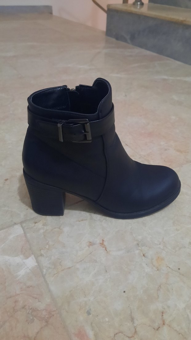 Siyah Tokalı Kadın Topuklu Bot