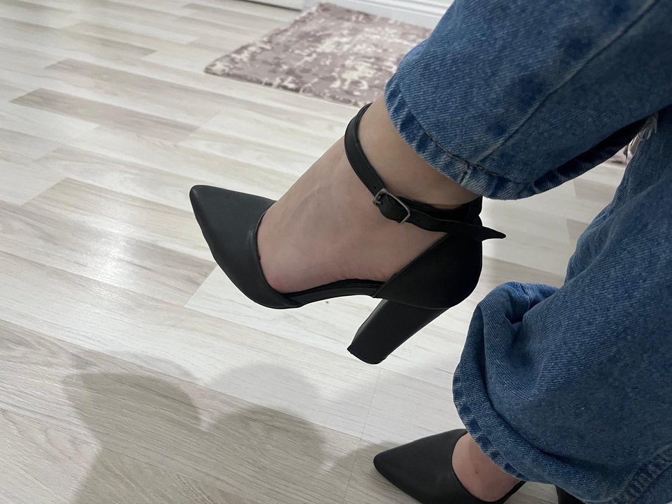 Siyah Tokalı Kalın Topuklu Kadın Ayakkabı