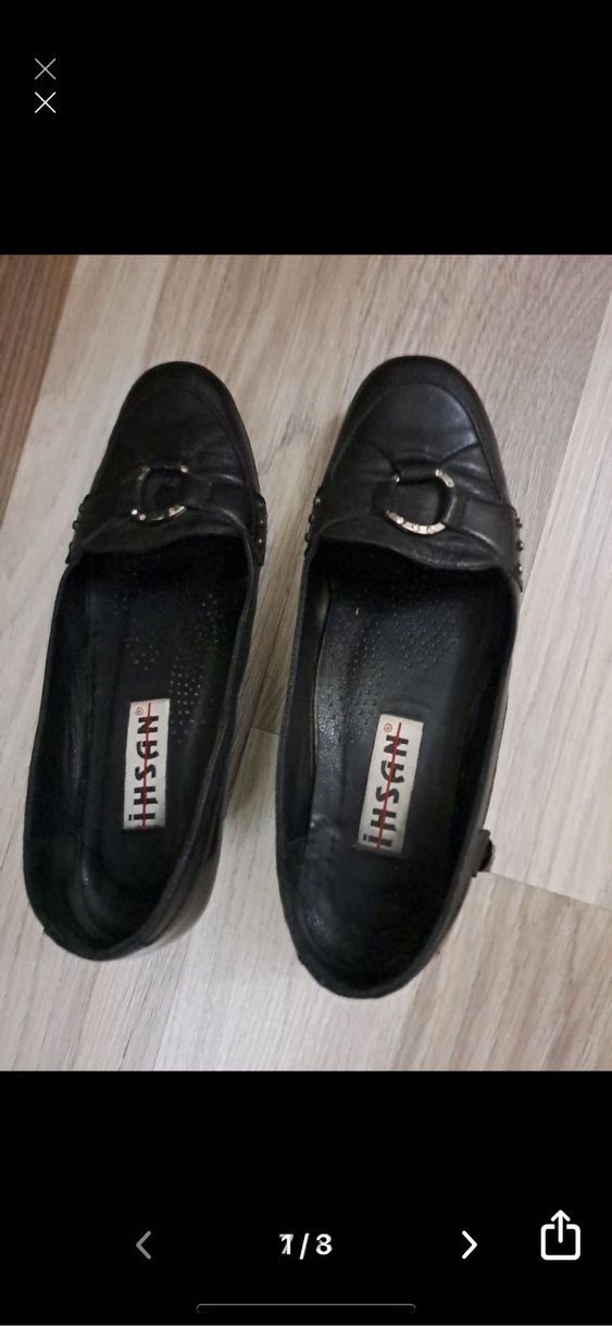 Günlük kullanıma uygun, tokalı ve düz yüzeyli siyah düz topuklu kadın babetleri. 'NUSH!' etiketi bulunur. 36/37