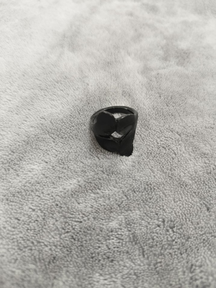 Minimalist ve gotik tarza sahip siyah tokalı kadın yüzüğü. Desensiz koyu renk yüzük, modaya uygun ve sportif kullanıma uygundur.