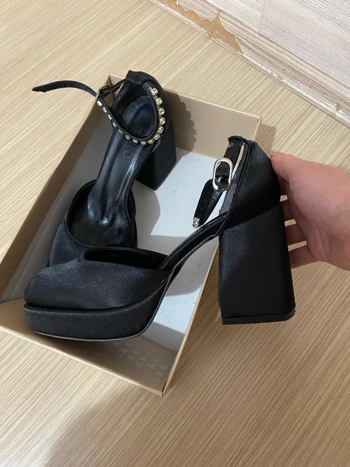 Siyah platform topuklu, blok topuklu ve tokalı.Bir defa kullanıldı .