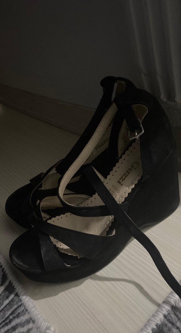 Siyah Tokalı Siyah Dolgu Topuklu Kadın Ayakkabı