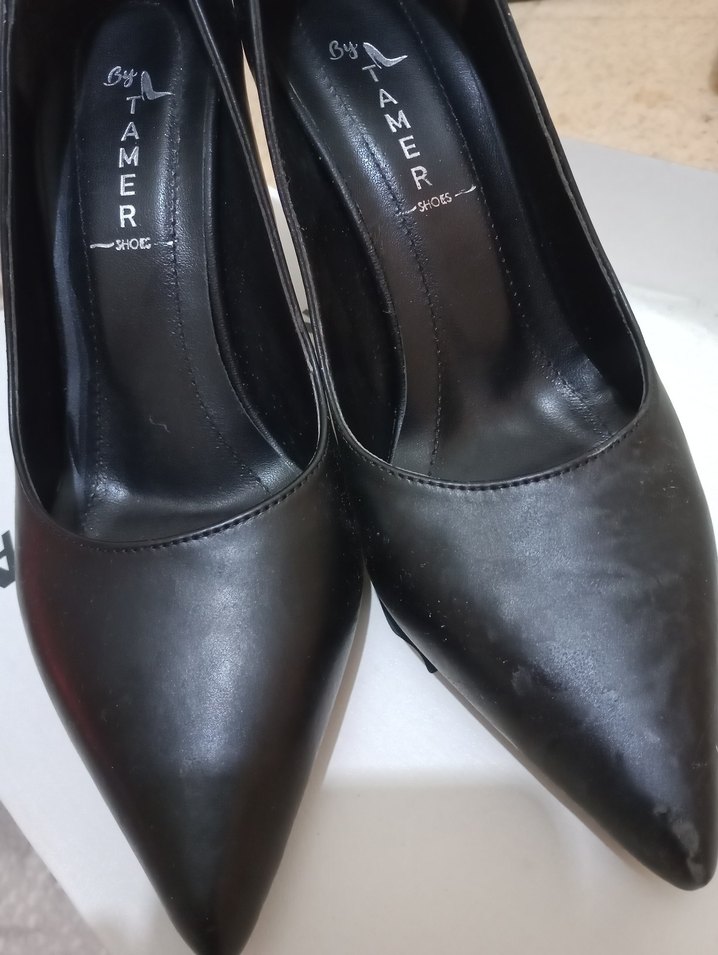 Siyah, tokalı ve lastik malzemeden yapılmış stiletto topuklu ayakkabı. Cesur ve gotik tarzda, ofis kullanımı için uygundur. (Ön ucunda hafif sıyrılma mevcut)