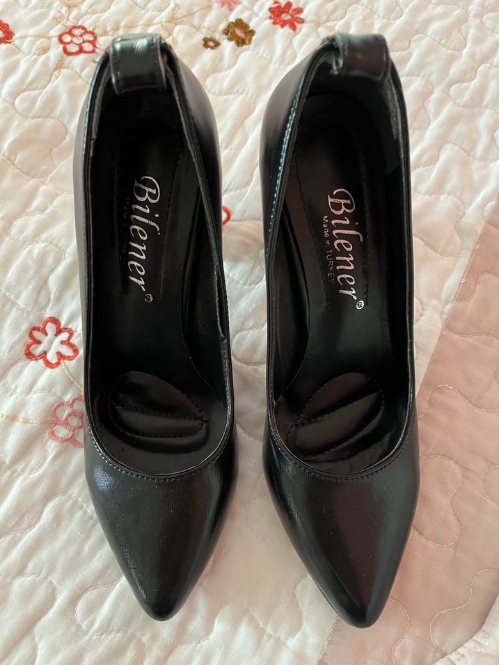 Bilener markalı, tokalı siyah stiletto topuklu kadın ayakkabı. Ofis kullanımı için uygun, cesur gotik tarzda ve kauçuk tabanlı.  bir kere ev içinde giyinildi onun haricinde bir yerde giyinilmedi alana hayırlı olsun tekliflere açığım