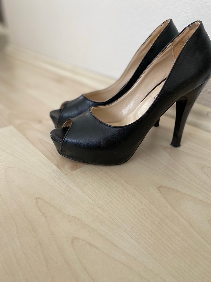 Siyah tokalı stiletto topuklu kadın ayakkabısı, kauçuk malzemeden üretilmiştir. Modern klasik tarzda, ofis için uygundur ve desensizdir.