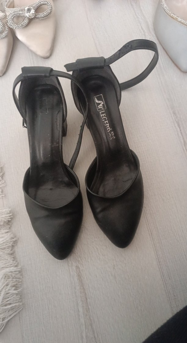 Siyah, tokalı, ince topuklu kadın ayakkabısı. Minimalist gotik tarzda, ofis kullanımı için uygun klasik şıklık sunar.