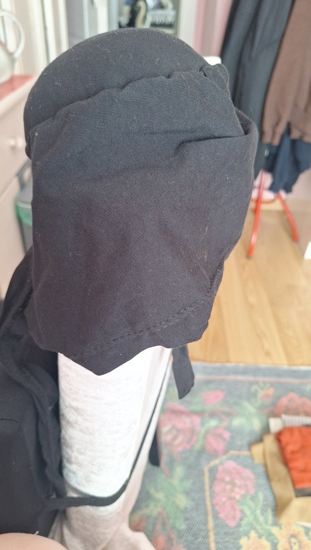 Yumuşak kumaştan siyah topuzlu bone hiç kullanılmadı