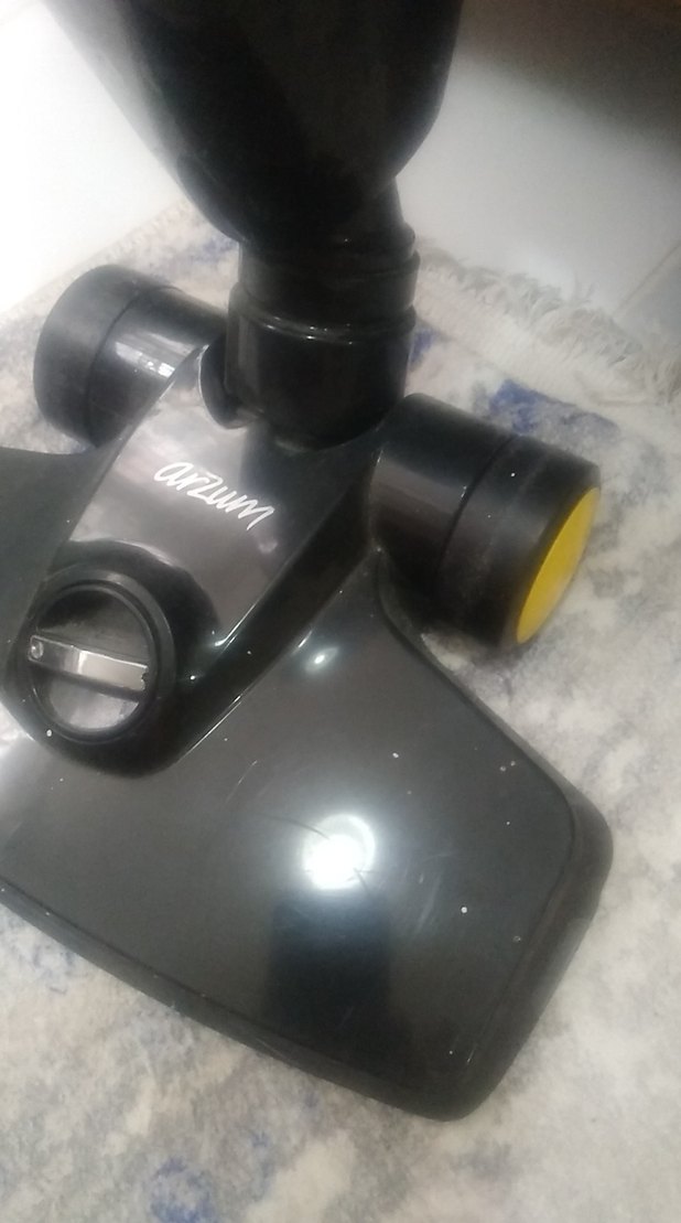 Siyah, tekerlekli toz torbasız elektrikli süpürge başlığı, farklı yüzeylerde etkili temizlik sağlar. sopası çıkıp takiliyor çok iyi çeker