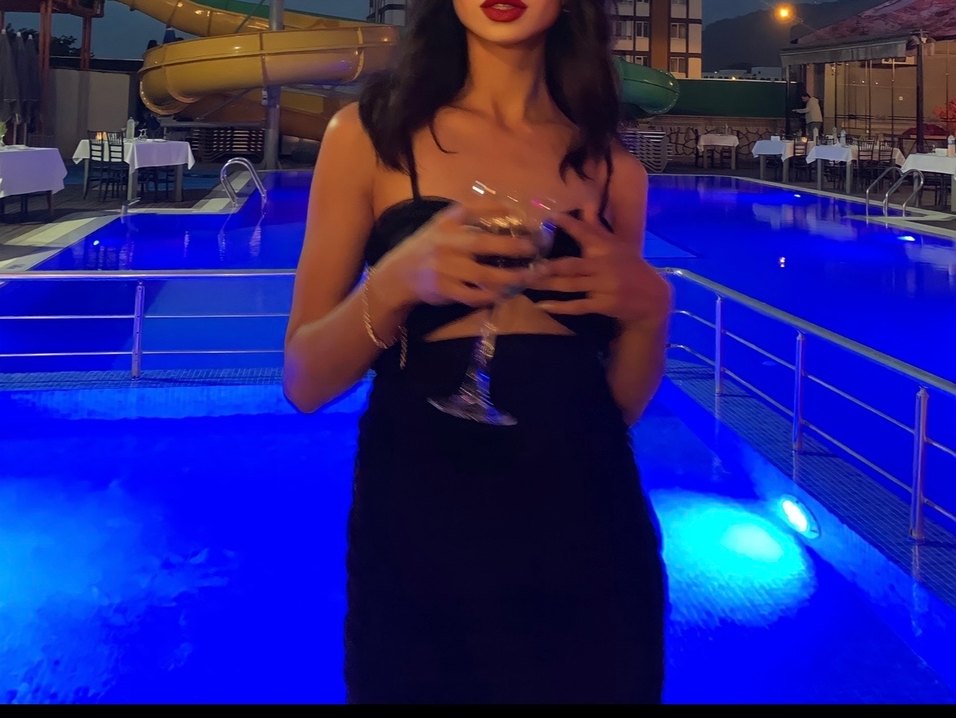 Siyah, transparan detaylı askılı ve straplez midi kokteyl elbisesi, cesur ve göz alıcı parti tarzı için uygun.