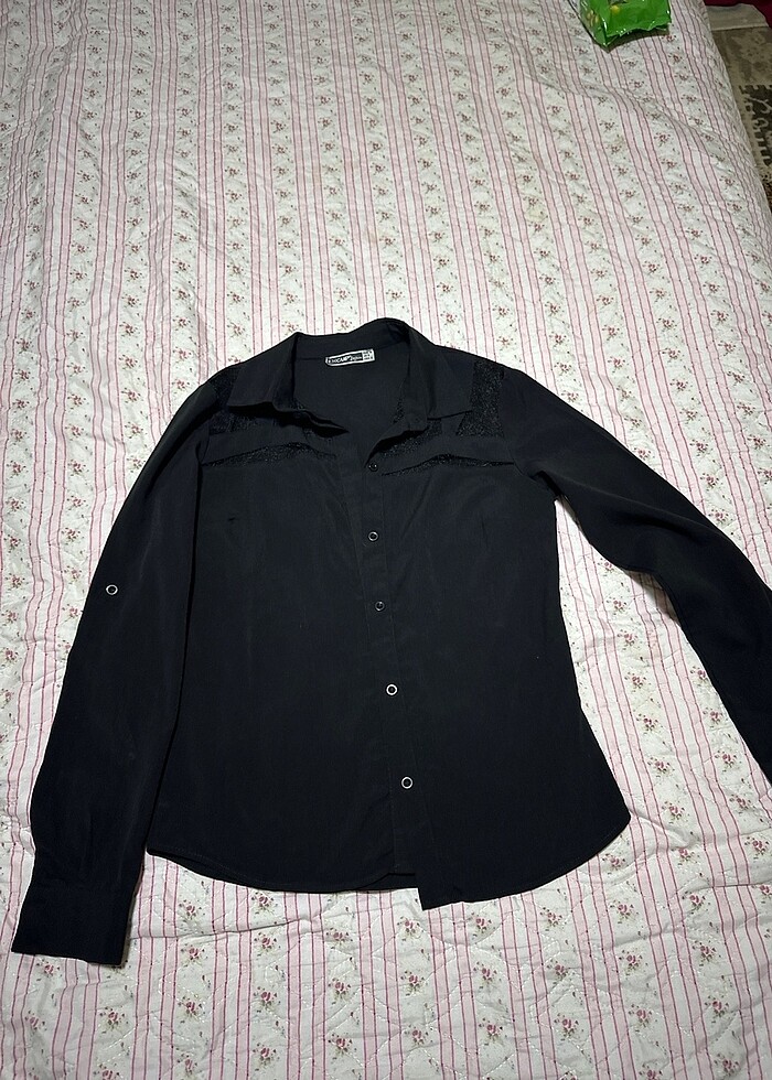 Siyah transparan detay gömlek