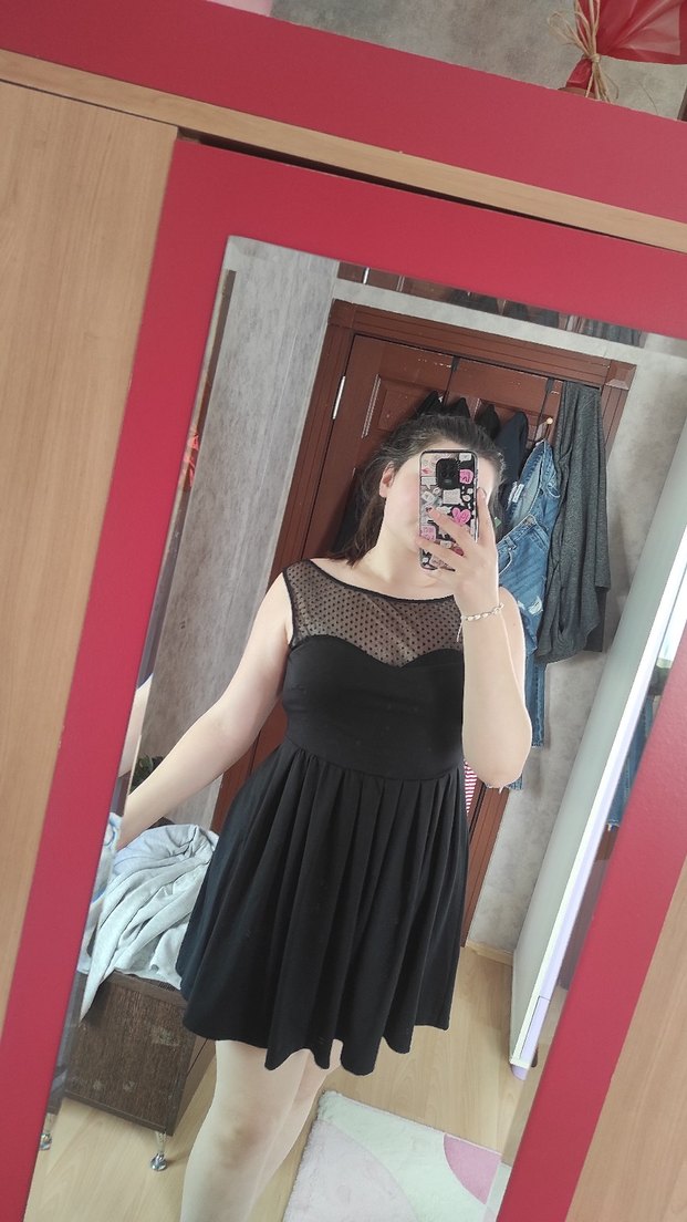 Siyah, vücuda oturan midi elbise, üst kısmında transparan file detay ve kolsuz tasarıma sahiptir. Günlük kullanıma uygun cesur gotik tarzda.42 bedene uygundur . Marka temsilidir