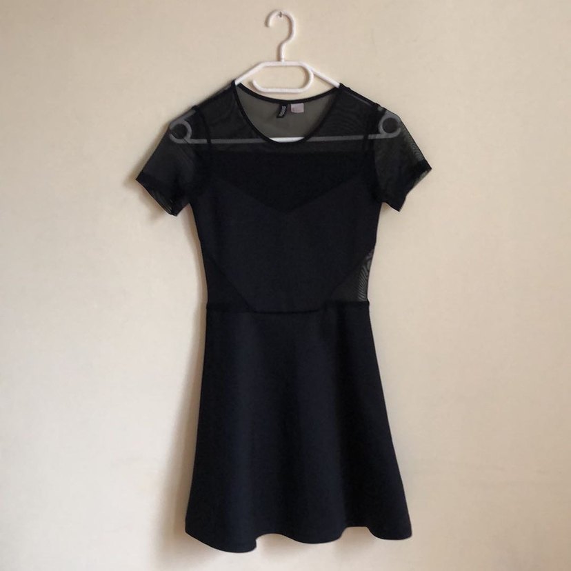 Siyah, kısa kollu, V yakalı, transparan detaylara sahip, midi uzunlukta, fit kesim gotik elbisedir.