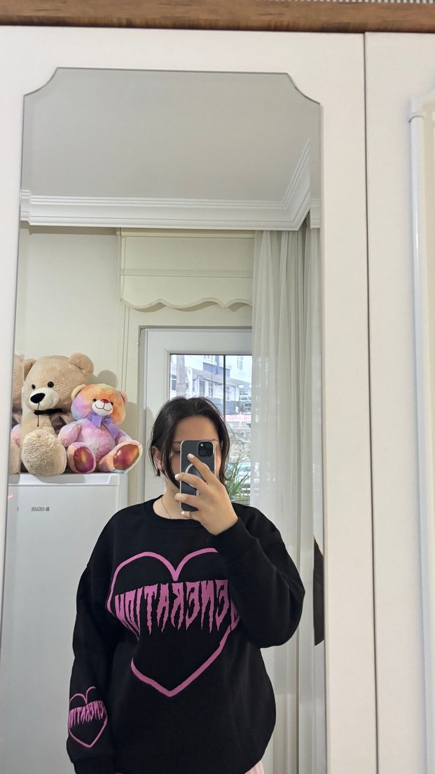 Siyah triko kumaştan, uzun kollu, yuvarlak yaka ve bol kesim sweatshirt. Gotik baskılı ve transparan detaylıdır. Sokak stiline uygundur.