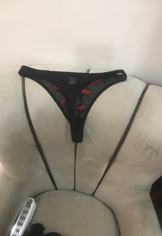 Siyah transparan, kırmızı dudak desenli, gotik athleisure tarzında kadın tanga, midi uzunlukta.