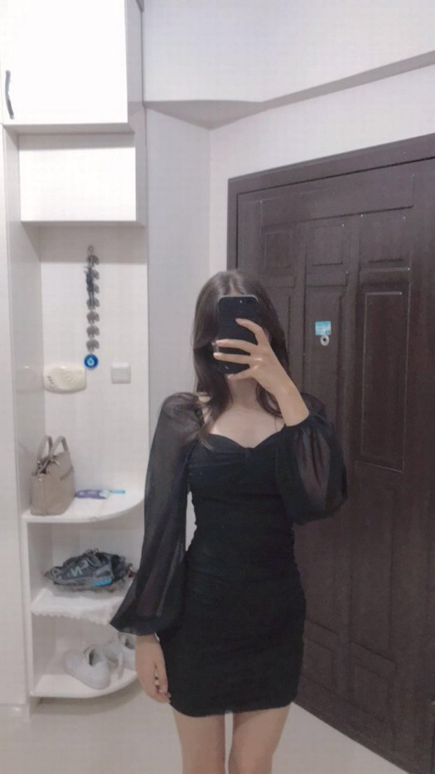 Siyah, V yakalı ve transparan uzun kollu, gövdeye oturan mini elbise. Gotik tarzı ile cesur romantik akşamlar için uygundur.