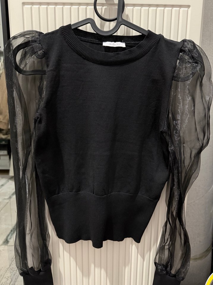 Siyah Transparan Kollu Uzun Kollu Bluz