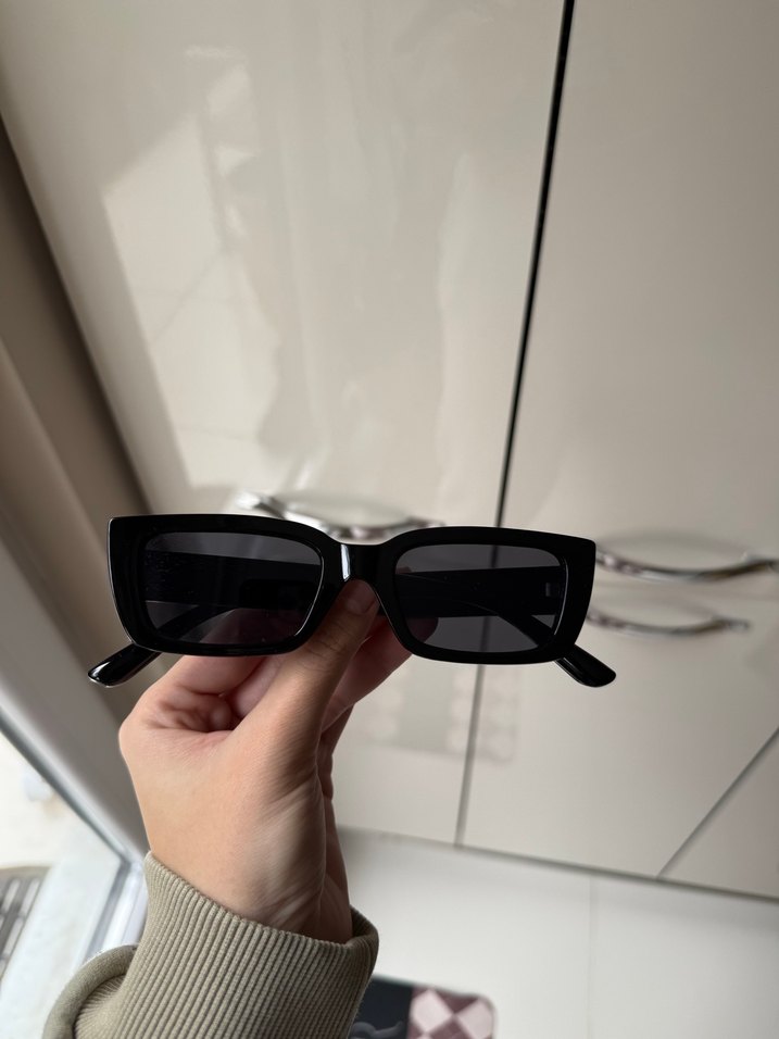 Gündelik sokak stiline uygun dikdörtgen kadın güneş gözlüğü.️ Mango marka, sol iç camında minör bir çizik mevcut ama iyi durumda.
