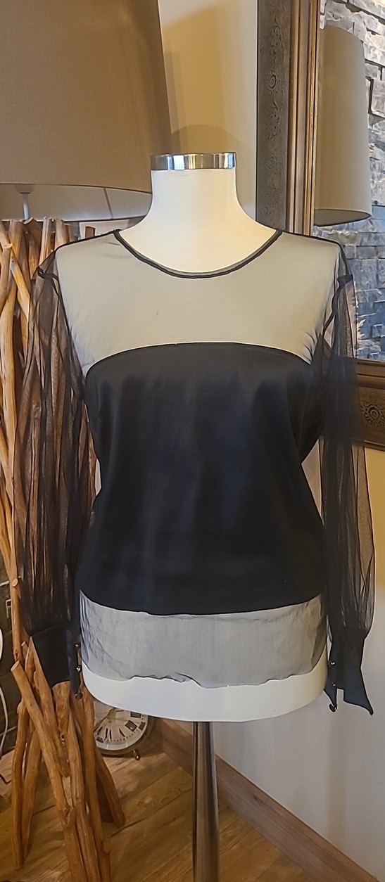 Siyah Transparan Uzun Kollu Kadın Bluz
