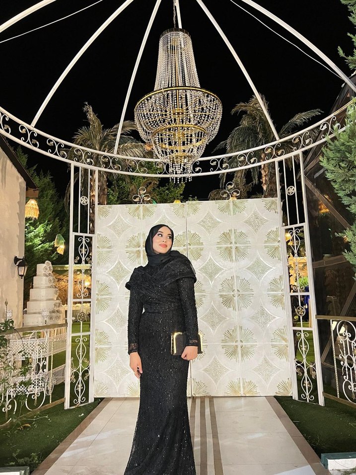 38-40-42-44-46 bedenler mevcuttur Siyah, yılan desenli uzun abiye elbise, yüksek yaka ve uzun kollu. Drapeli, klasik kesimle şık ve gösterişli davetler için uygun.