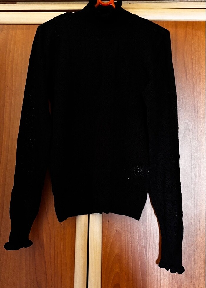 Kol ve yaka fırfır detaylı triko. delikli kumastir iç gosterir. Kusuru yoktur.