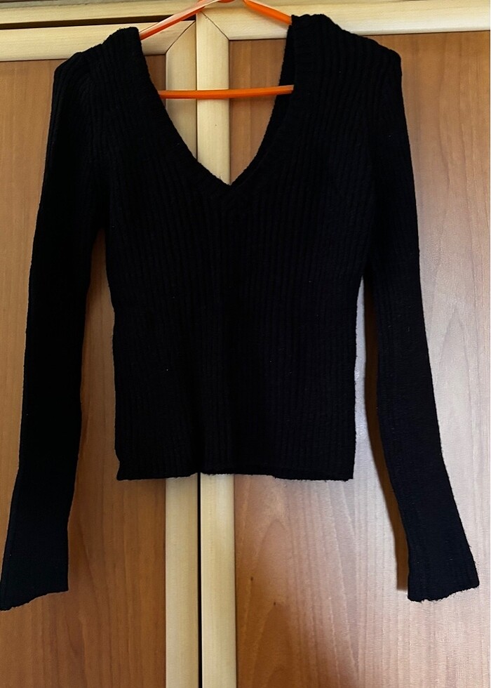 Düz model v yaka triko. Boyu bel hizasindadir. Kusuru yoktur. V dekoltesi biraz açık gelebilir.