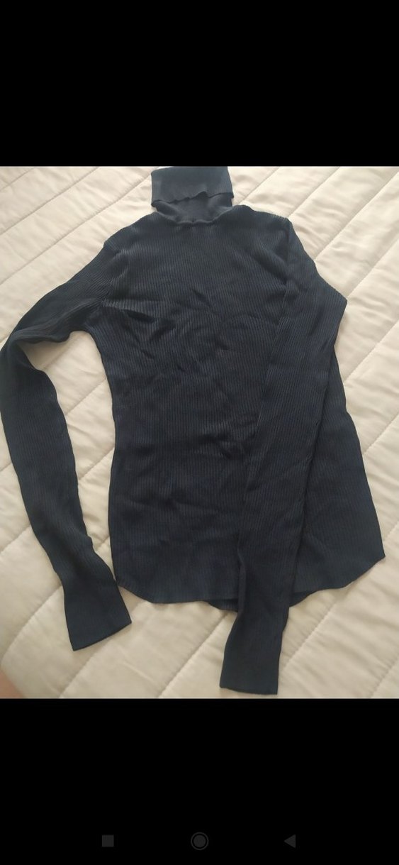 Siyah, triko boğazlı ve uzun kollu, ince kesim kadın kazak. Keten dokulu, günlük kullanıma uygun rahat sokak stili.