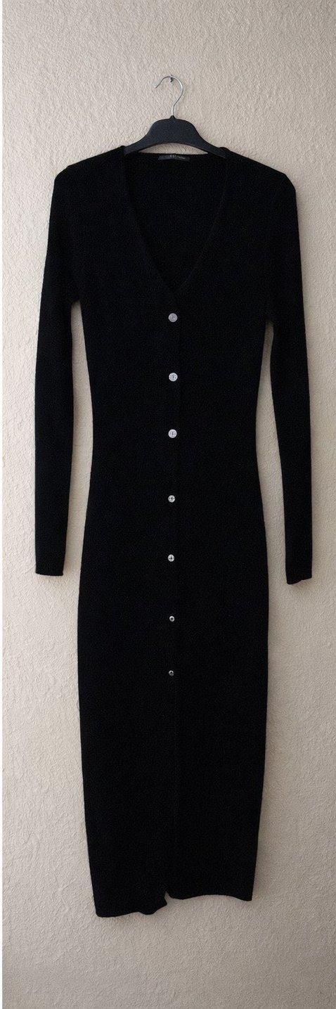 Düğmeli siyah Uzun Triko Elbise