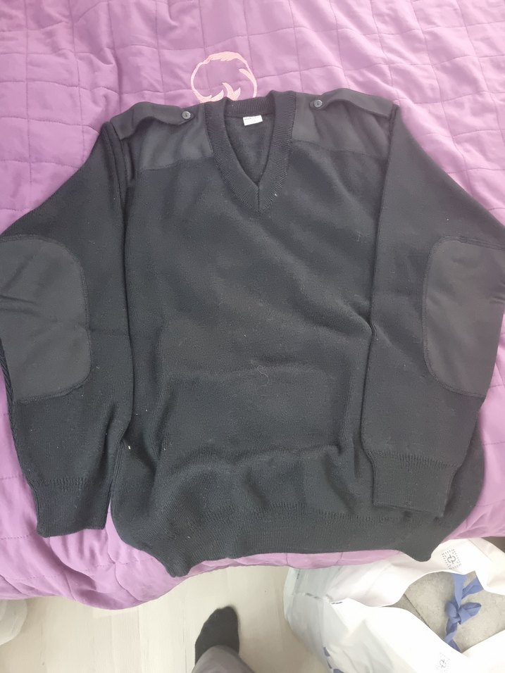 Erkekler için siyah renkte, uzun kollu, V yaka ve bol kesim triko kazak. Dirseklerde detaylı, rahat ve gündelik goth tarzı için uygun.