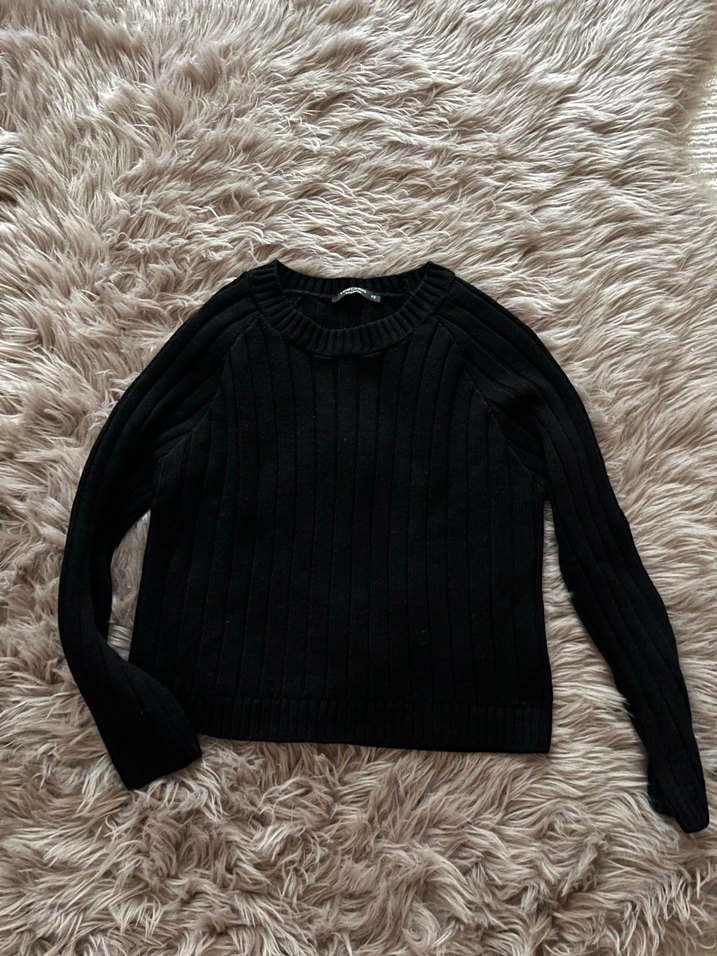 Siyah triko kazak, yuvarlak yaka ve uzun kollu tasarımıyla rahat ve bol kesimdir. Günlük kullanım için konforlu ve sade bir şıklık sunar.