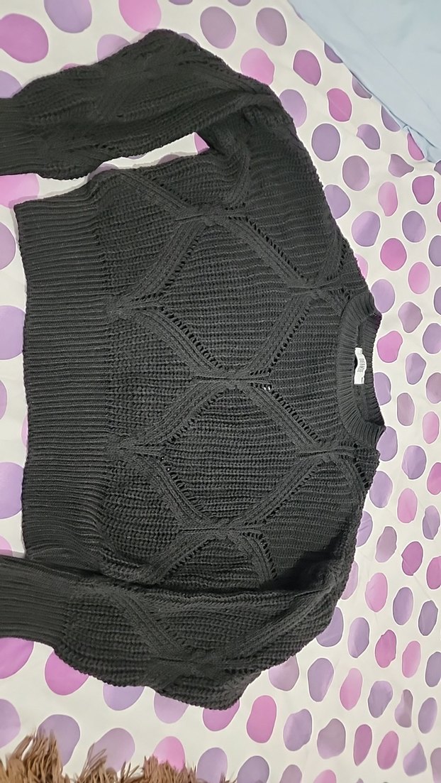 Siyah, triko kazak, yuvarlak yaka ve uzun kolludur. Rahat, gotik tarzda ve midi boyda, günlük kullanıma uygundur. ikikoltukarasi62cm boy49cm