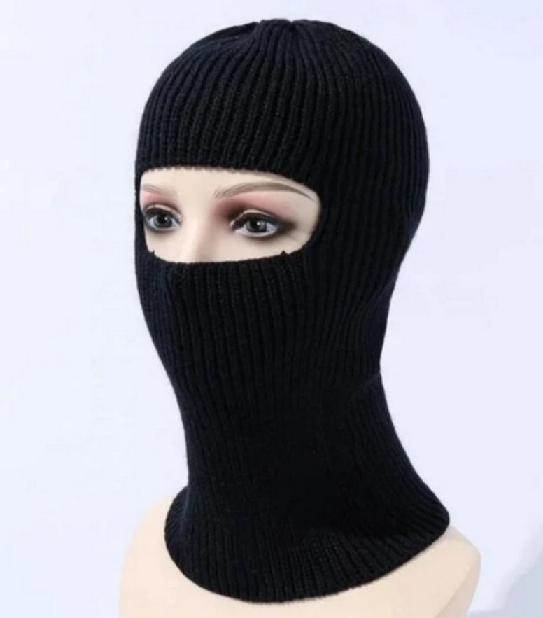 Siyah renkte, yüzü kapatan deliği olan, rahat ve örme dokulu biker tarzı bere. Kiglik Kar Maske Dokuma Triko Bere - Siyah #bere #karmaskesi #maske