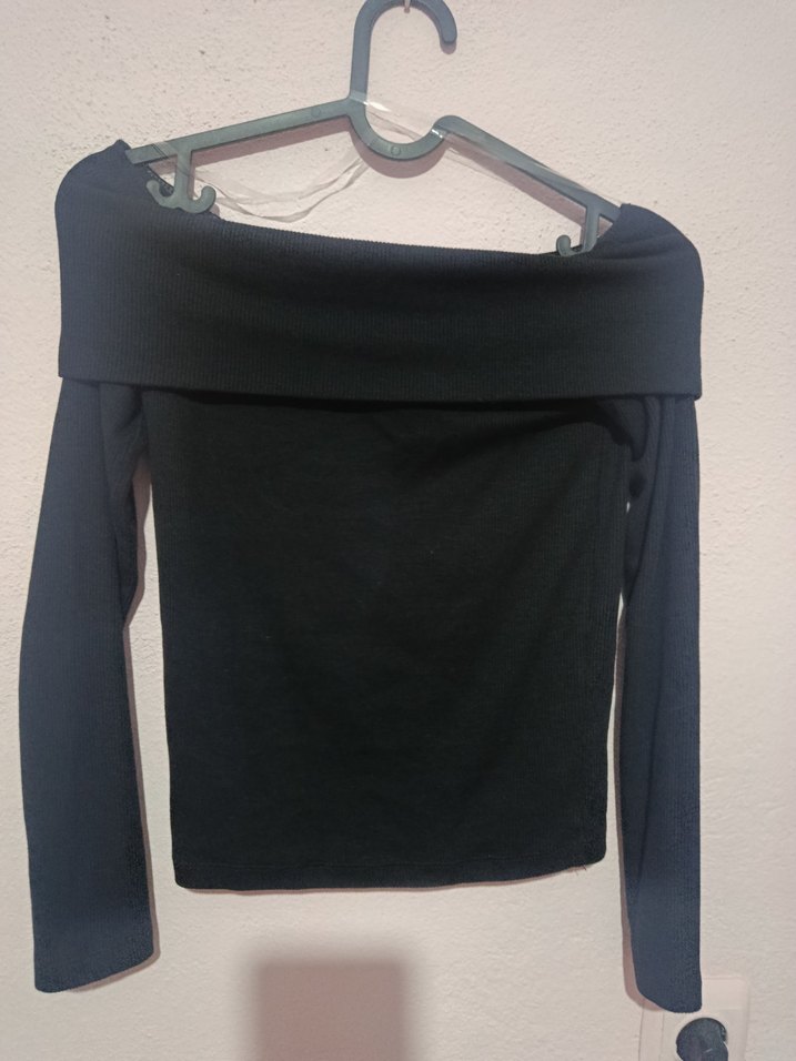 Siyah triko kumaştan, kayık yaka ve uzun kollu, vücuda oturan kadın bluz. Günlük sokak stiline uygun.