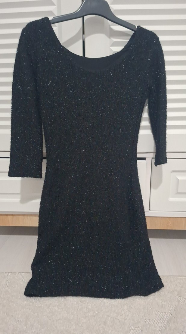 Siyah Triko Midi Elbise, Uzun Kollu, Kayık Yaka