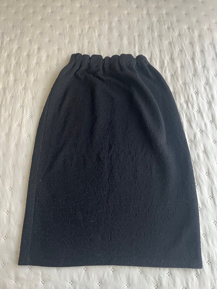 Siyah, triko dokulu hamile eteği, yumuşak keten kumaştan üretilmiştir. Rahat oturan, midi boyda ve goth tarzında günlük kullanıma uygundur. Sadece 1 kez giyildi