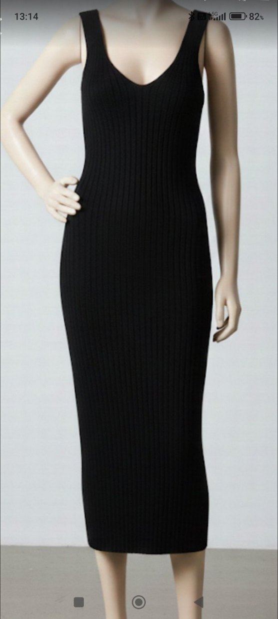 Bu siyah triko uzun elbise, kalın askılı tasarımıyla sade günlük kullanım sunar. hiç giyilmedi yumuşak kumaş. standart beden esnek bi kumaşı var.