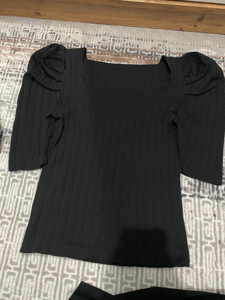 Siyah triko, uzun kollu, kare yaka ve vücuda oturan kesimiyle sokak tarzı ve rahat bir bluz. Normal boyda, günlük kullanıma uygundur.