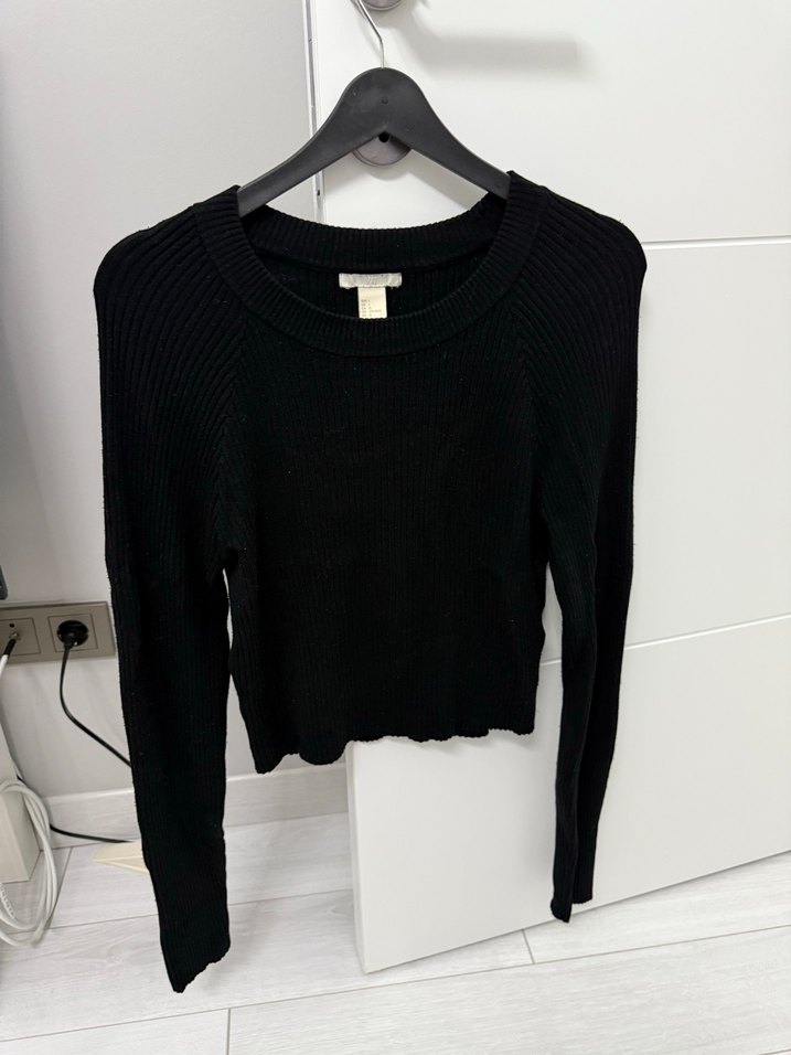 Siyah renkli, uzun kollu ve bisiklet yaka triko kazak, vücuda oturan kesimiyle günlük sokak stiline uygundur.