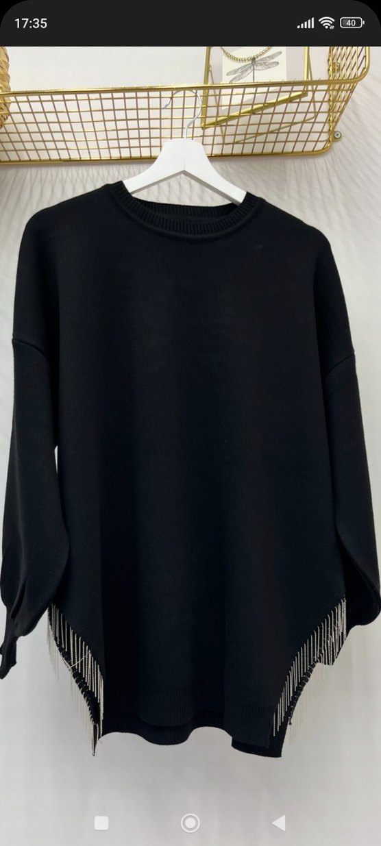 Siyah Triko Uzun Kollu Salaş Kazak