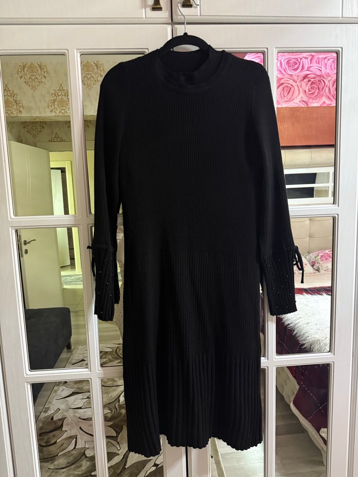 Siyah Triko Uzun Kollu tunik elbise