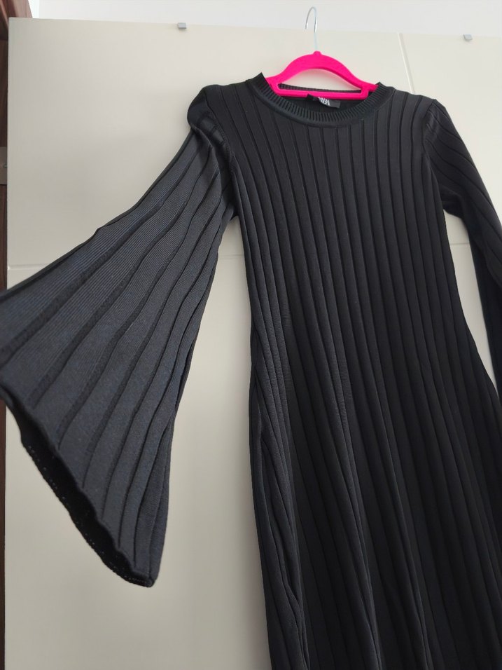Siyah triko kumaştan yapılmış, uzun kollu ve uzun boylu elbise. Yuvarlak yaka ve şık kesime sahip. Bir kez çekimde kullanıldı sıfırdan farksız.Standart beden.