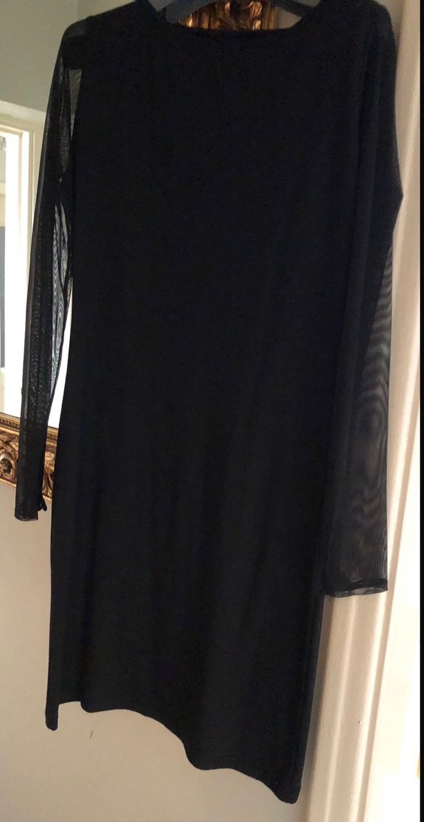 Sıfır üründür.. Hiç giyilmemiştir..36-42 beden arası uyumludur..Boyu 95 cm, Göğüs 50 cm dir..Kumaşı dokuma, tok bir kumaştır..Kolları tüldür..Gece-Gündüz giyilebilecek, sade ve şık bir elbisedir..Kladik tarzda, modası hiç geçmeyen elbisedir..Siyah, uzun kollu, ve tek renk fit kesim elbise, ipeksi kumaştan, klasik tarzdadır..