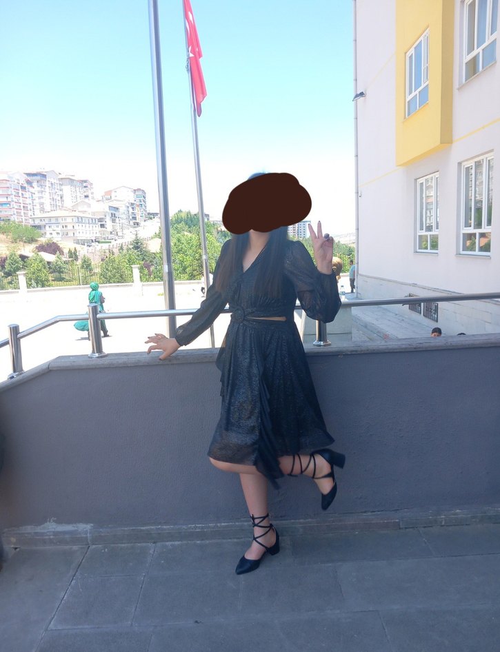 Siyah diz hizası uzunlukta mezuniyette bir kere giyildi. Parti için uygundur.