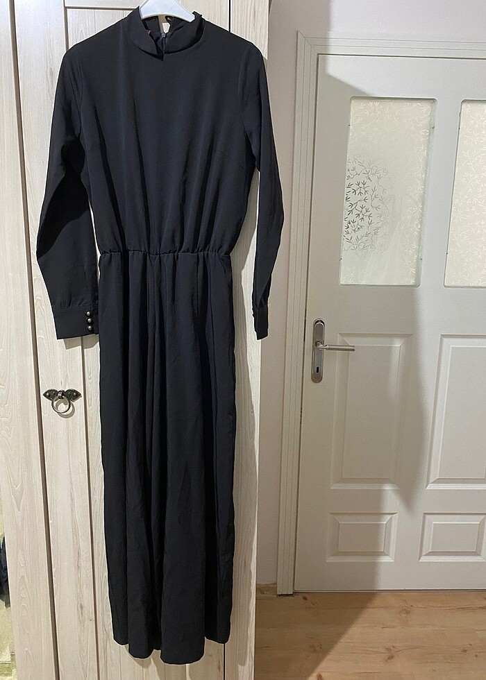 Siyah tulum. Herhangi bir deformesi yok. Kolları düğme detaylı. Paçaları bol. 36 beden