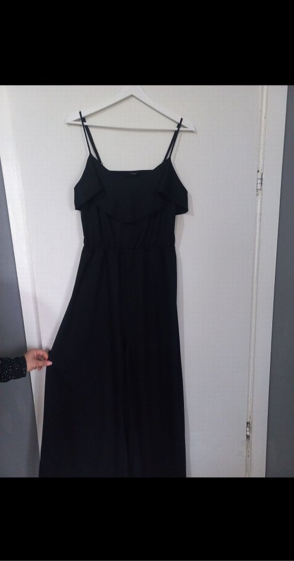 siyah tulum ince askılar ve fırfır detayları ile rahat bir kesime ve straplez yaka tasarımına sahiptir. Pürüzsüz sentetik kumaştan yapılmıştır arkadaşım nişanda giymiştim tarzıma göre olmadığı için giymiyorum çok az kullanıldı 1 veya 2 kez giyildi